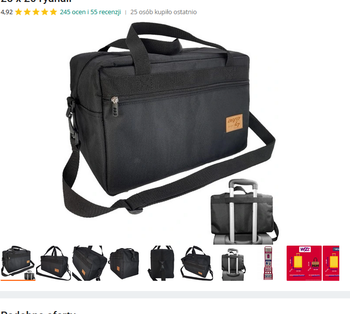Torba do samolotu , luku bagażowego ma wymiary spełniające aktualne wymogi wszystkich linii lotniczych  40 x 20 x 25 cm.