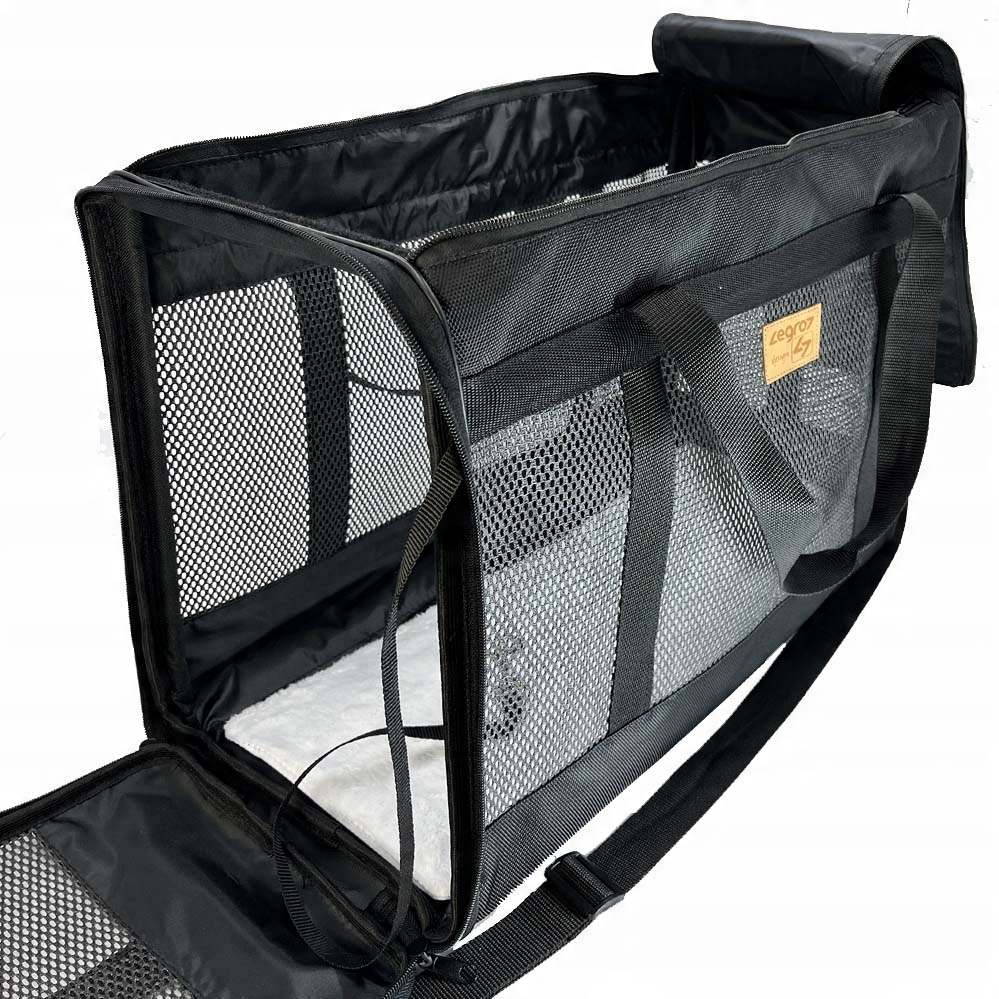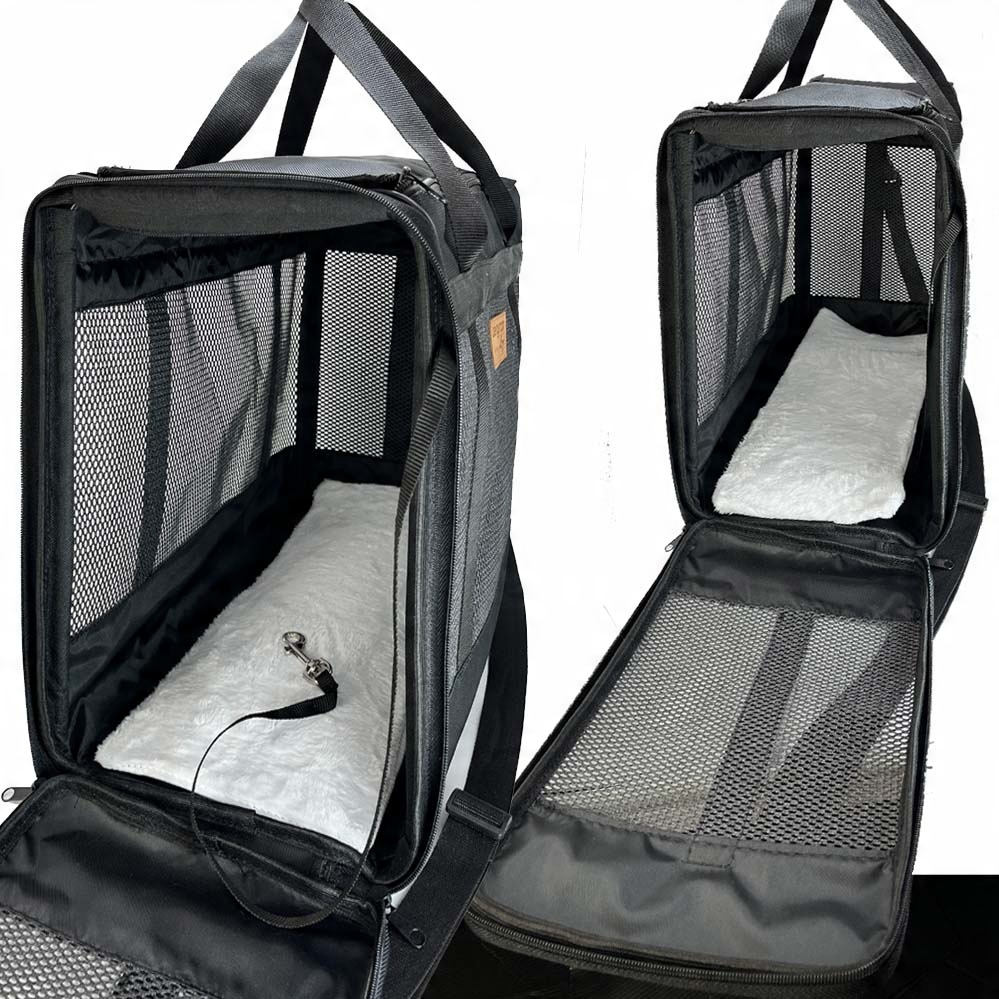 Spełnia wymiary bagażu kabinowego akceptowanego przez linie lotnicze Lufthansa, dzięki czemu możesz bez przeszkód podróżować ze swoim zwierzakiem także w samolocie.