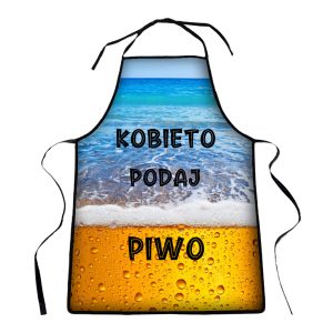 Fartuch kuchenny na prezent, z nadrukiem – Kobieto podaj piwo