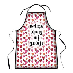 Fartuch kuchenny na prezent, z nadrukiem - całuję lepiej niż gotuję